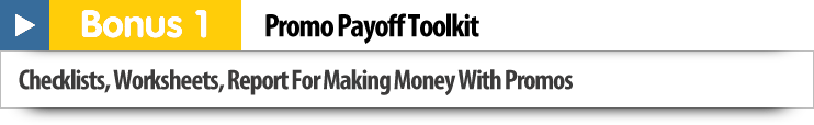 Use just ONE of the included resources just ONE time and you are almost certain to recoup your low investment in the Promo Payoff package. Everything else you earn from using it in the future is FREE MONEY FOR YOU!